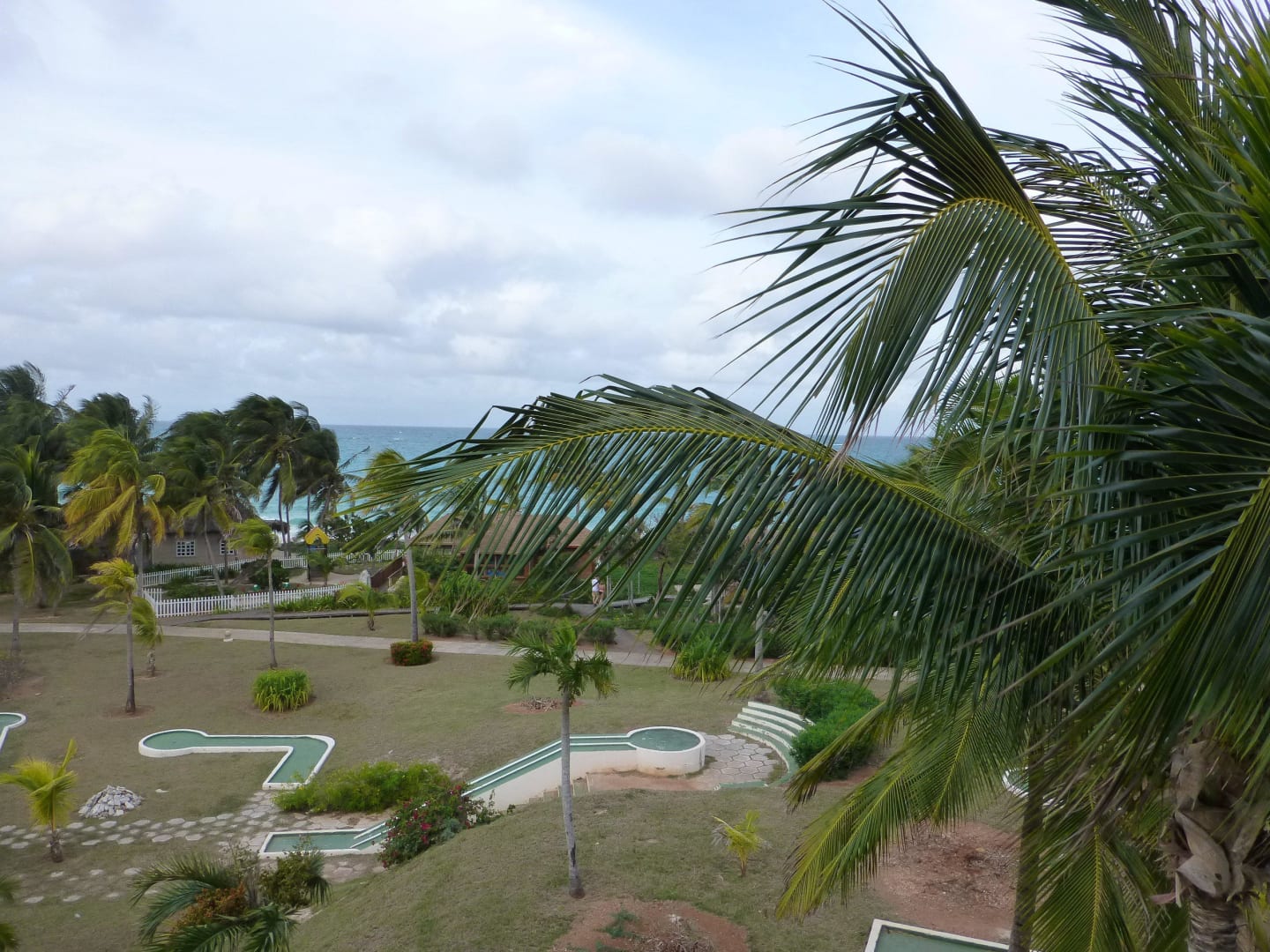 Blick vom Zimmer zum Meer über Minigolfanlage