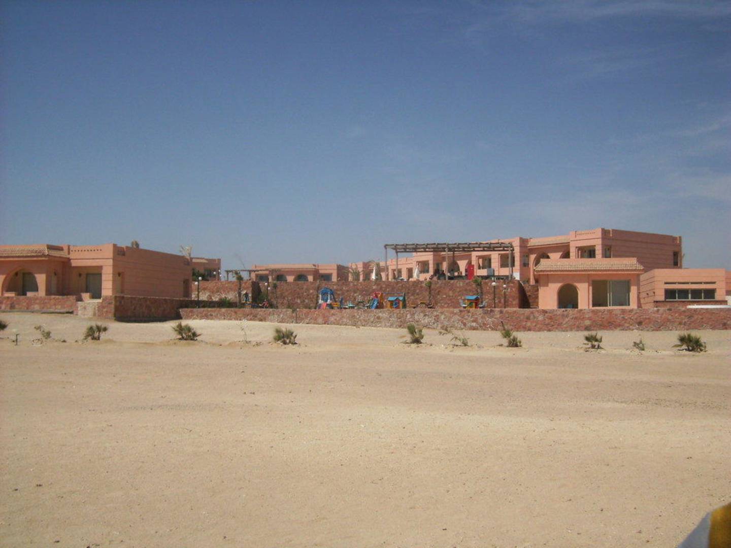 Blick vom Strand auf Hotelanlage