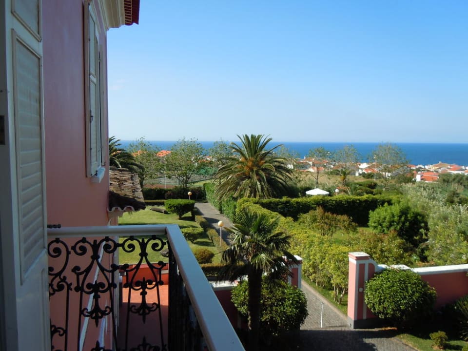 Ein Blick vom Balkon in den Garten und auf's Meer...