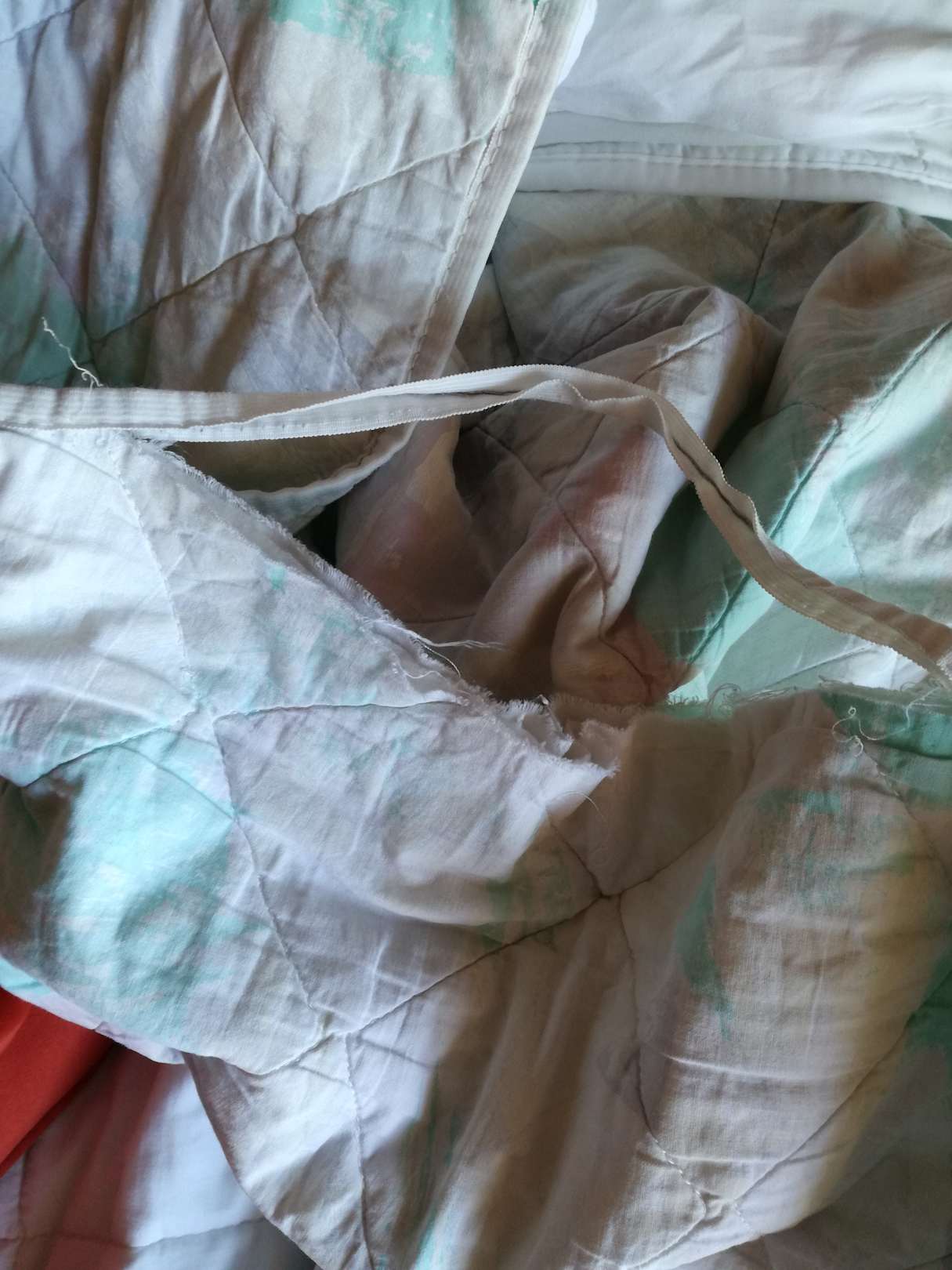 Bettdecke,unbezogen und zu dem noch kaputt