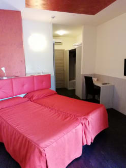 Doppelbett mit Blick auf Eingang