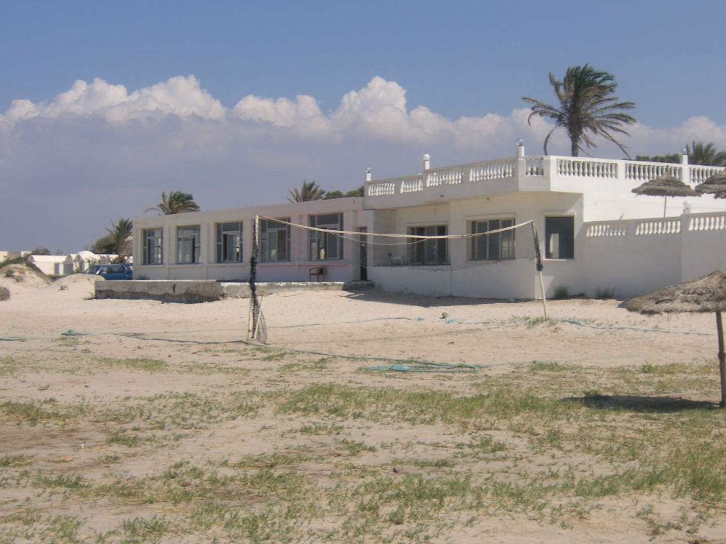 Verlassene , heruntergekommende Gebäude, sollte wohl die Strandbar sein
