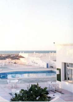 Blick vom Balkon/Terrasse im 1. OG auf die "Poollandschaft", in Richtung Meer