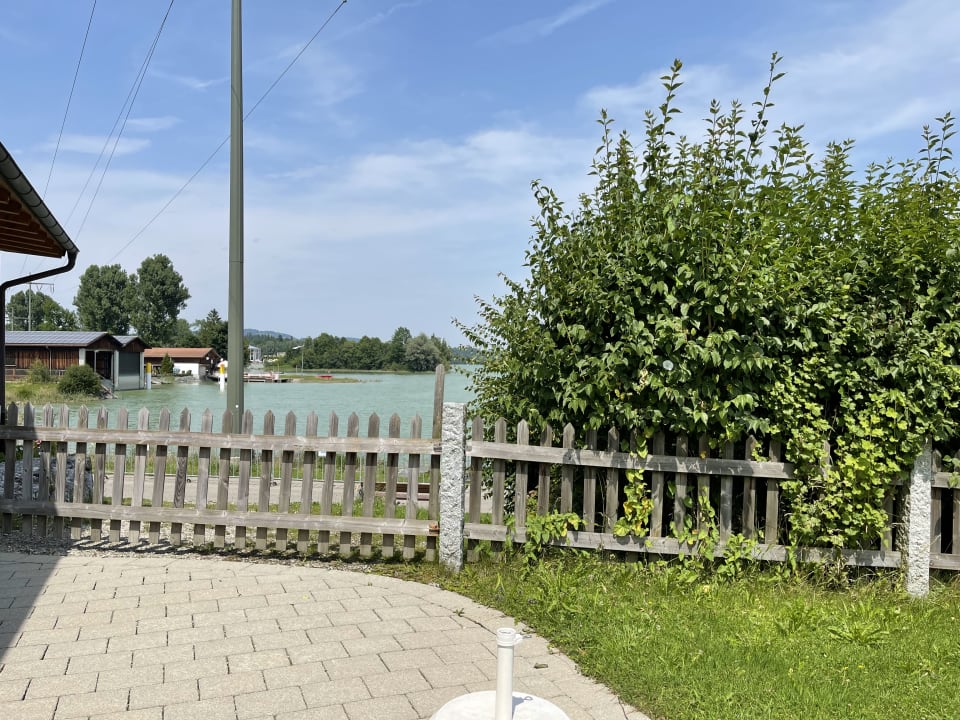 AusblickGarten in der Wellness mit Blick zum Forggensee