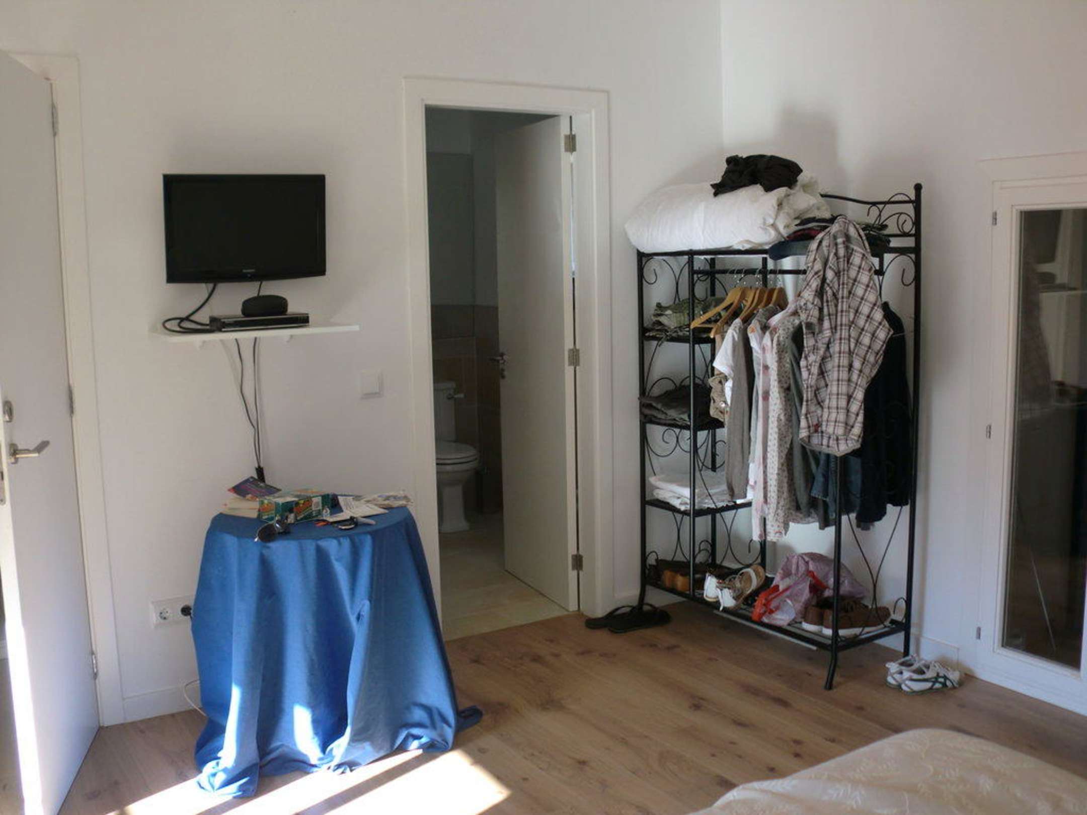 Blick vom Bett aus in Richtung Bad
