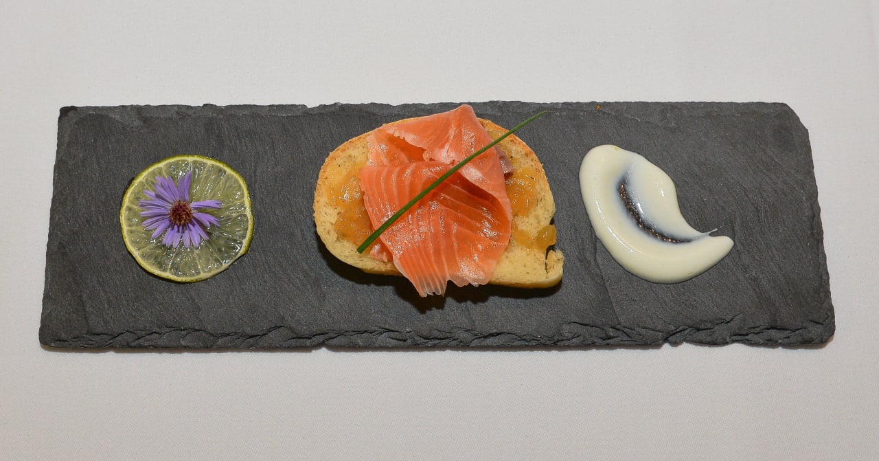 Hausgebeizter Wildlachs mit Olivenbrot