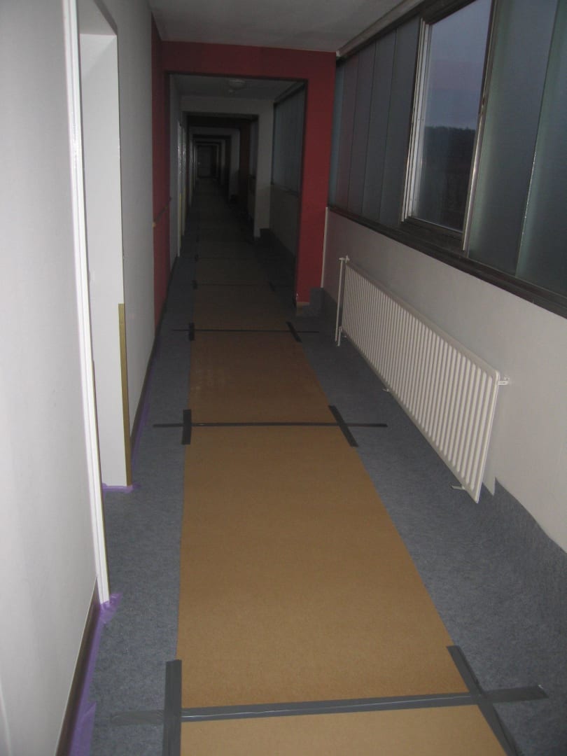 So sah unser Flur am unserem 2. Tag ausAn unserem 2. Tag wurde der Flur so umgestaltet, wie es auf dem Bild zu sehen ist. Die ausdünstungen des Teppichs und der Platten waren zum k******, also unerträglich - eine Zumutung.