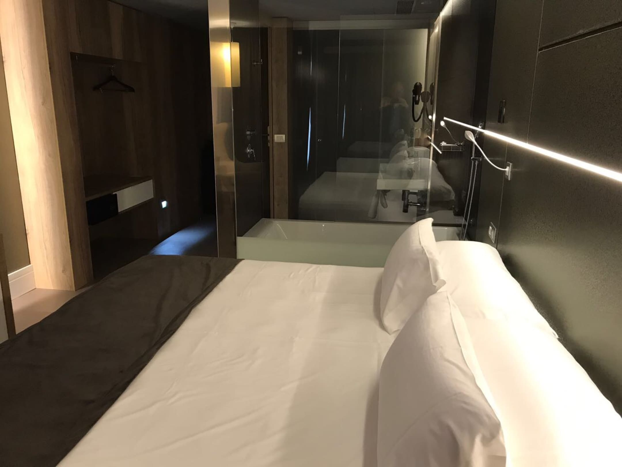 gläserne Dusche ( es gibt aber auch ein Rollo ), Regendusche , alles sehr neu und sehr geschmackvoll