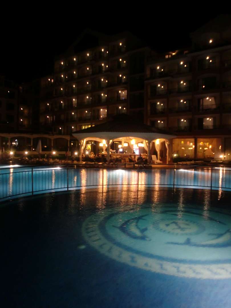 Basen i bar przy basenie noca
