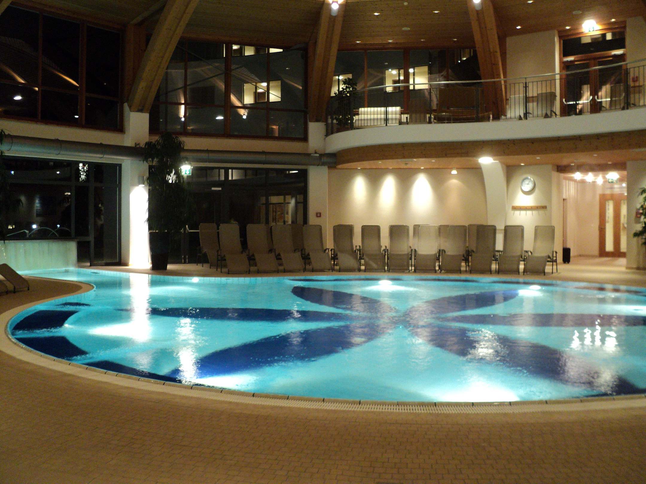 Innenpoolom Innenpool kann man direkt in den anschließenden Außenbereich schwimmen (hier sind 2 Becken mit 30° bzw. 36° C)