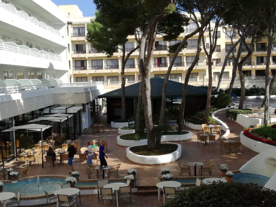 Der Blick vom Balkon in den innen-garten.