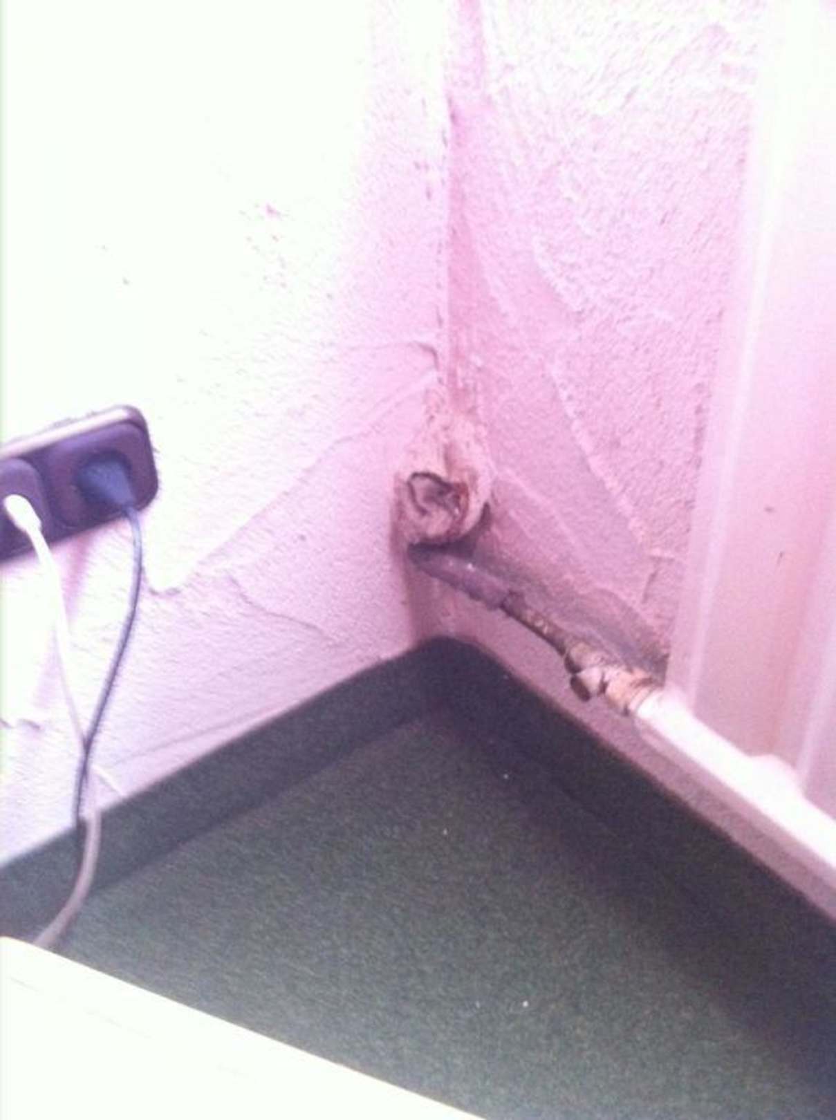 Das Abflussrohr neben dem Bett