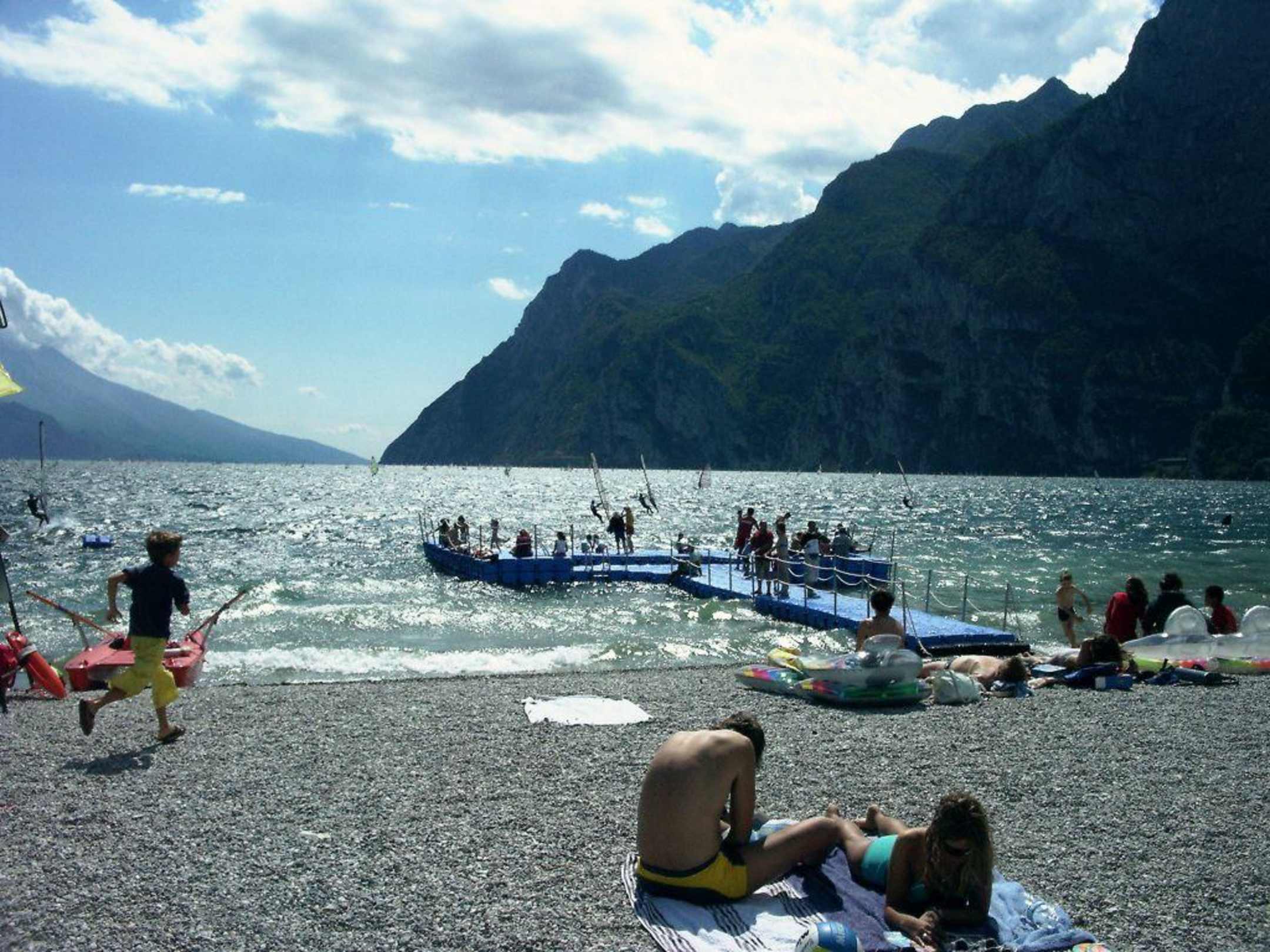 Strand Spiaggia nach rechtsStrand mit Blick nach Rechts Richtung Limone, mit dem schwimmenden Swimming Pool.