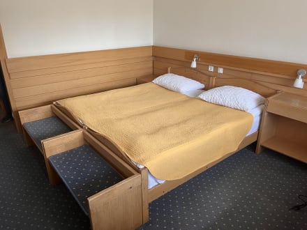 Normales Doppelzimmer mit abgelaufenem Teppichboden. Bettlampen an denen man sich den Kopf anschlagen muss und eine davon defekt ist. Steckdosen die beim Abziehen des Steckers mit herauskommen. Möbel sind zerdellt und zerkratzt.