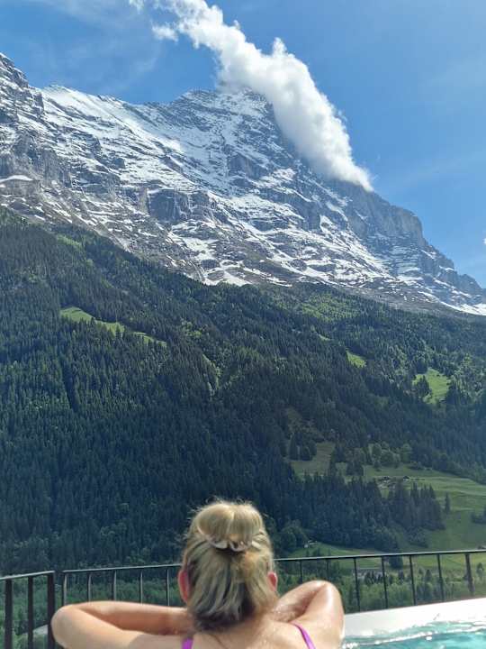 Blick auf den Eiger vom Pool.
