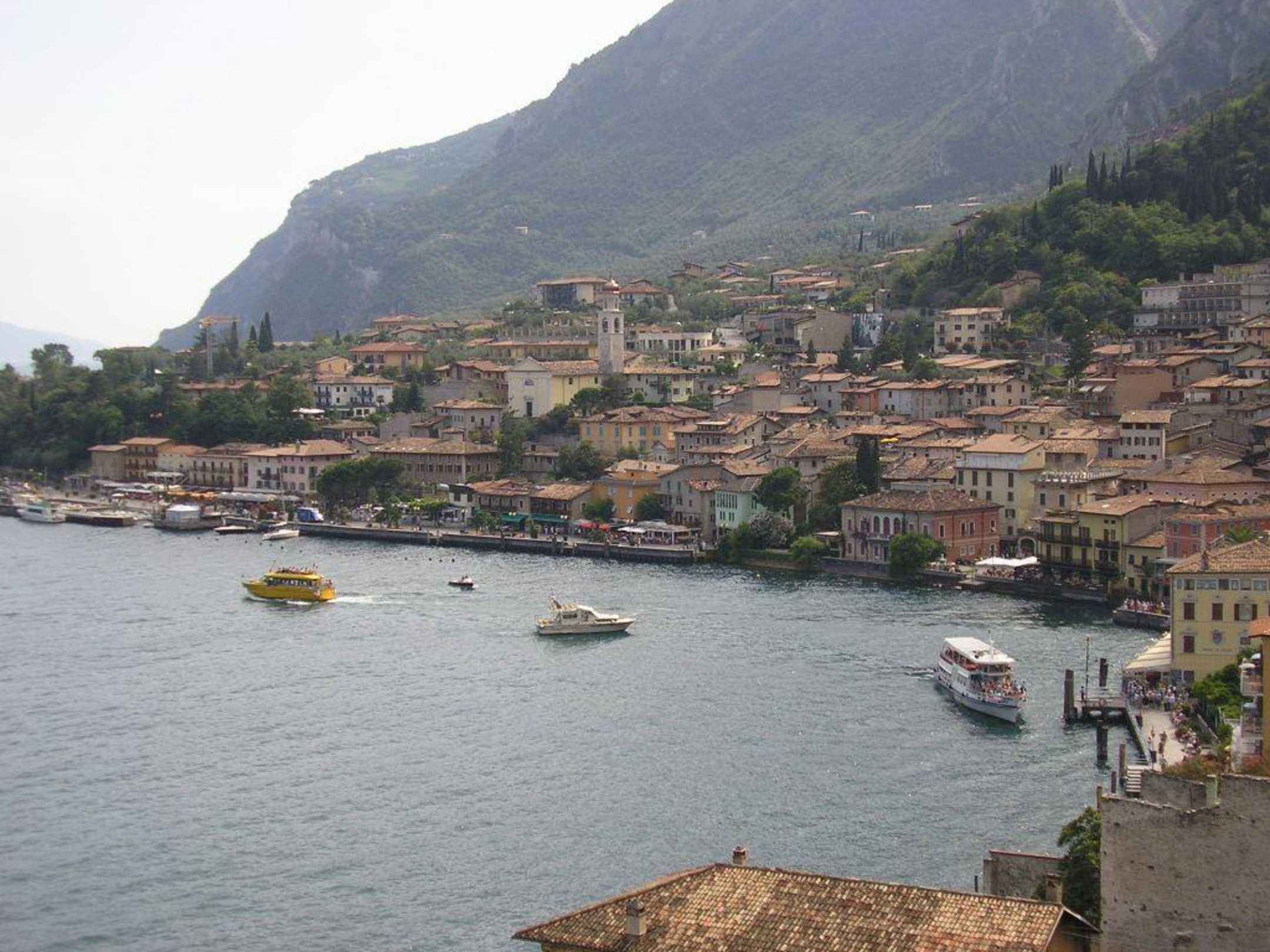 Blick von der Hotelterrasse auf den Hafen von Limone