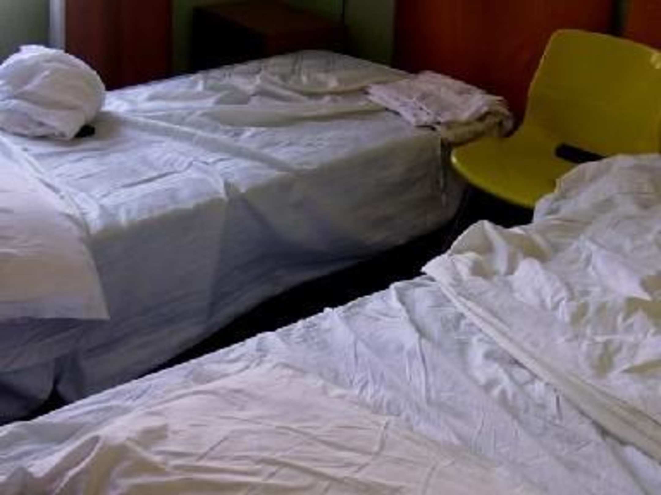 Auseinanderziehbares Ehebett mit kaputten Lattenrosten
