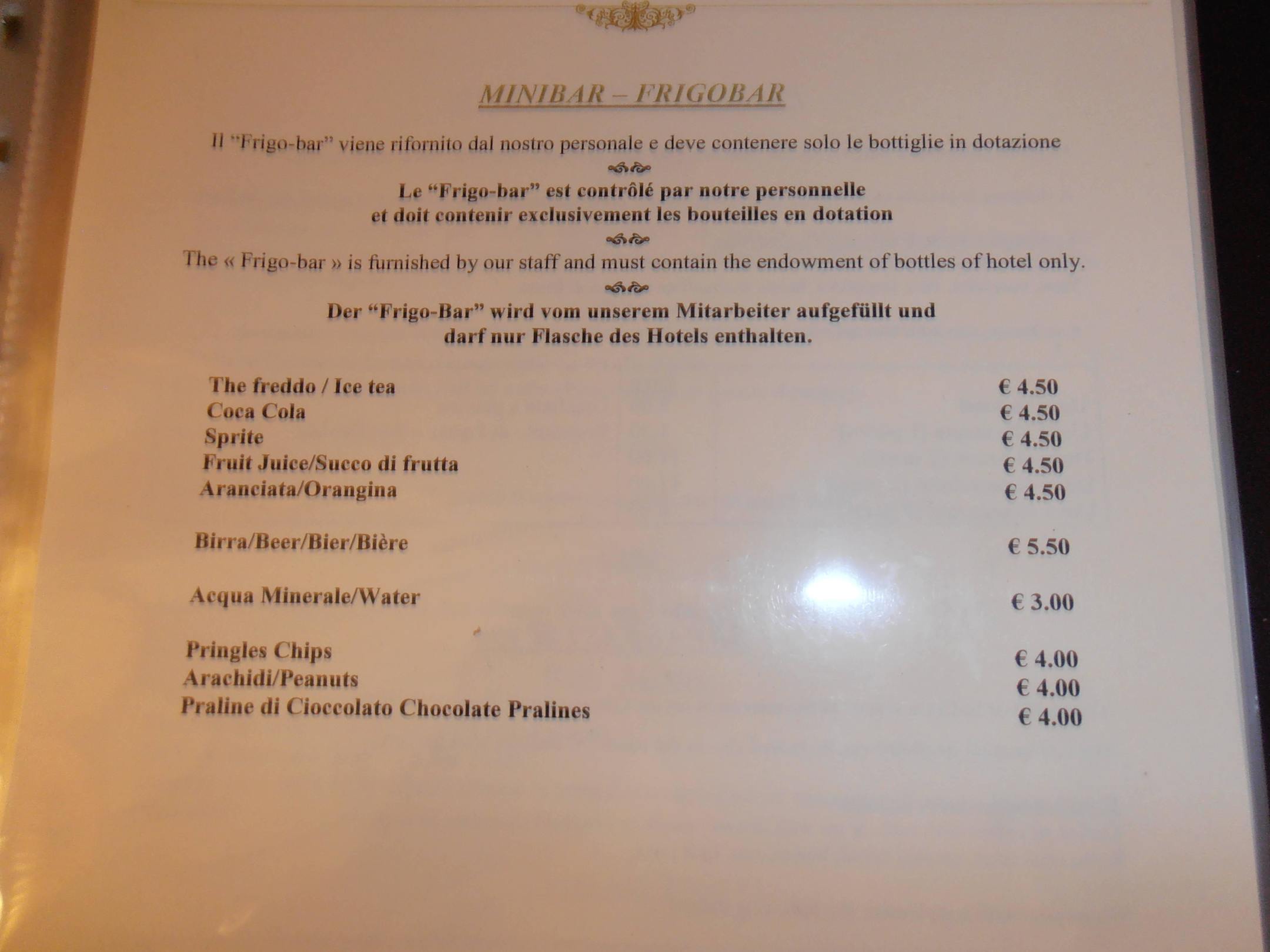 Preise der Minibar