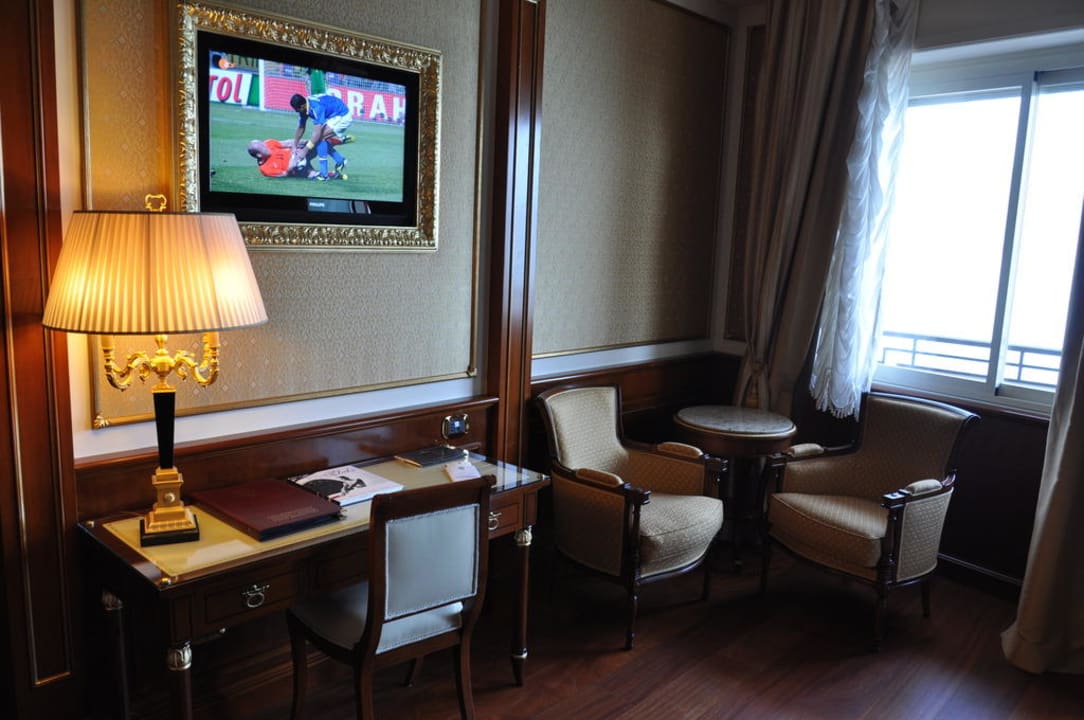 Sitzgruppe und Flachbildschirm im Goldrahmen
