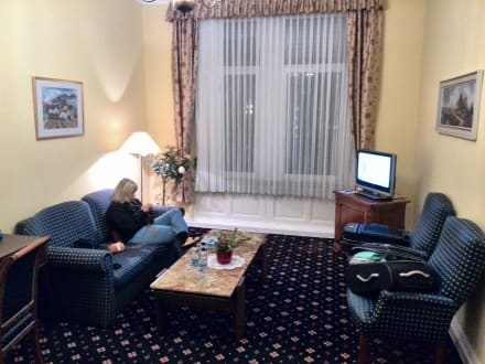Seperates Wohnzimmer mit LED-TV und Minibar