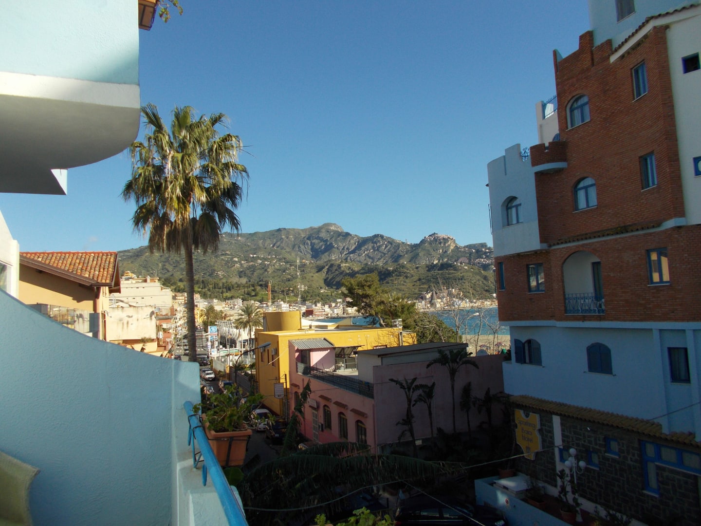 Blick vom Balkon zum Meer und nach Taormina