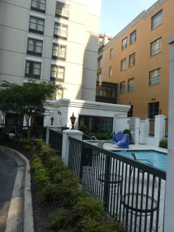 Die beiden gebäudeteile und der Pool