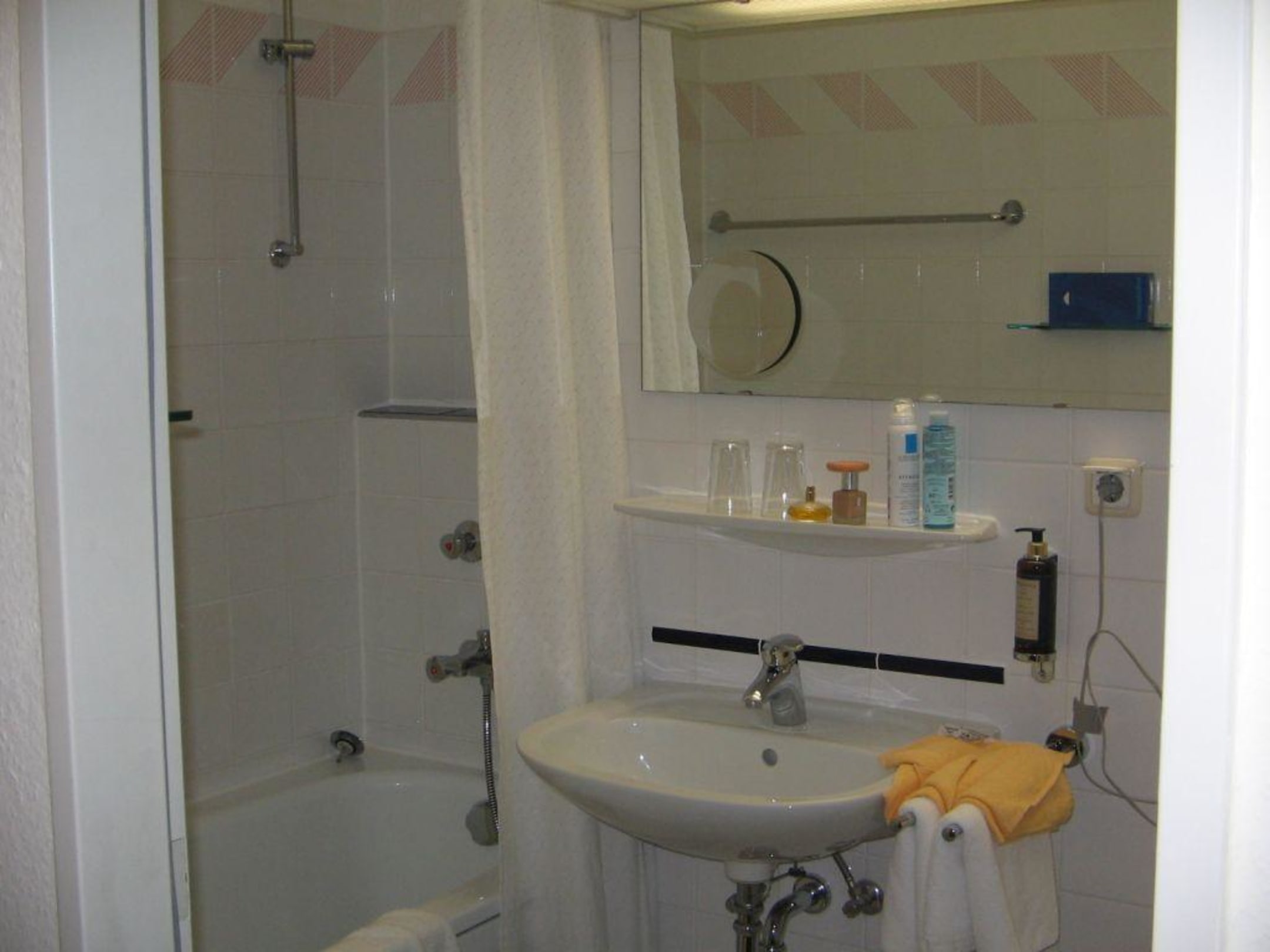 BadezimmerSehr schönes helles Badezimmer. Sauberkeit war gut!