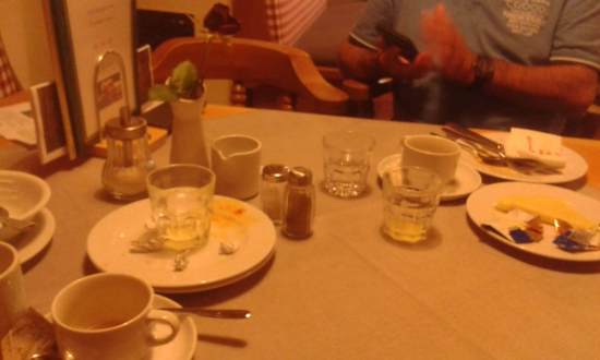 Nicht abgeräumter Frühstückstisch