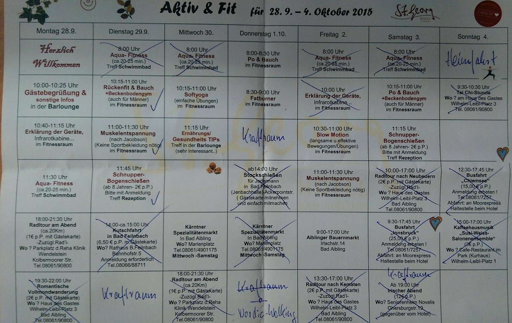 Wochenangebote, zb. Fitness