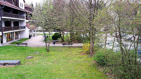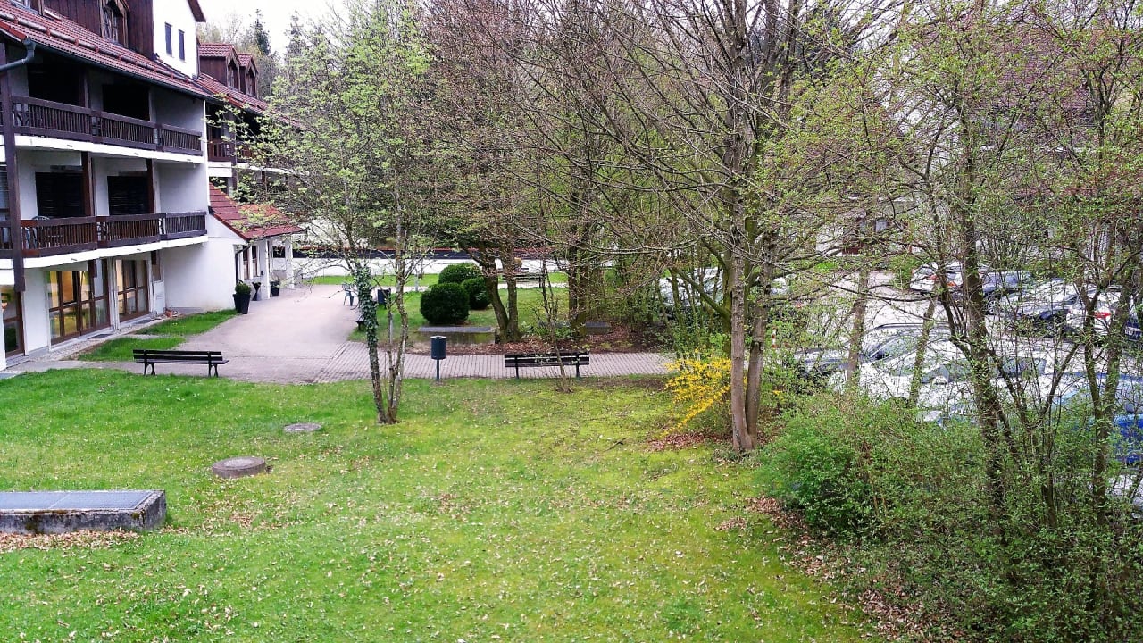 Ausblick auf Innenhof und Parkplatz von EZ 426, abends ist es eher unruhig zur Nacht wird es dann aber, der eigentlichen Umgebung entsprechend stille.