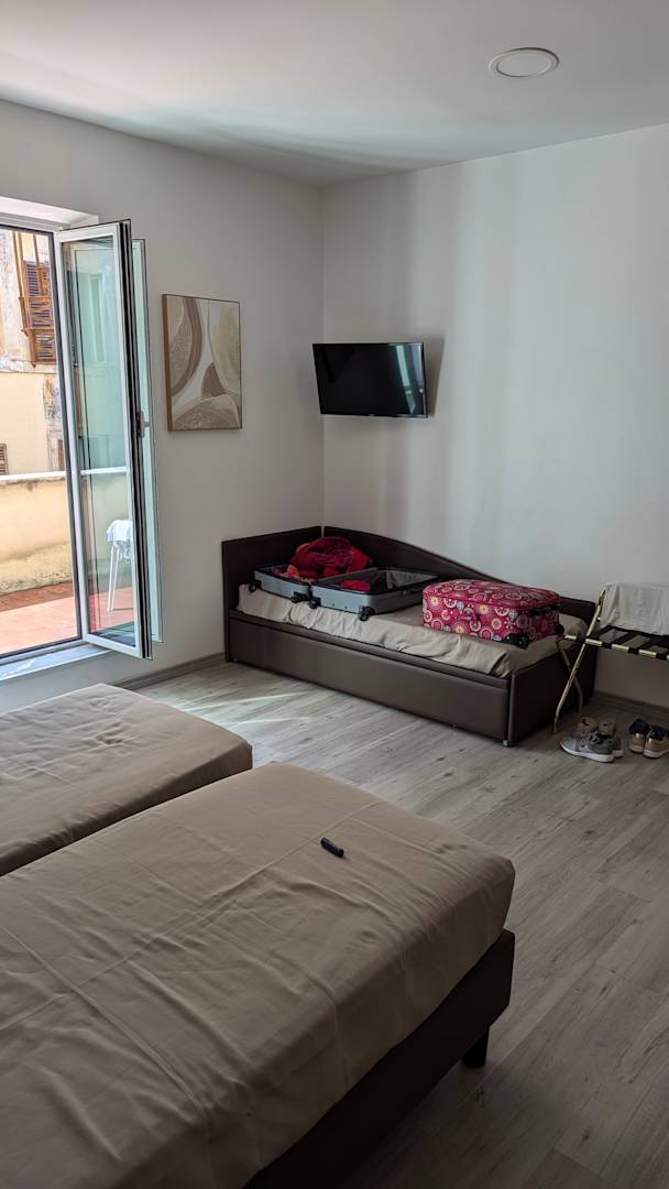 Zimmer 28 in der 2. Etage mit Blick zum Innenhof und der Frühstücksterrasse