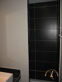 Schwarze Fliesen in der Dusche