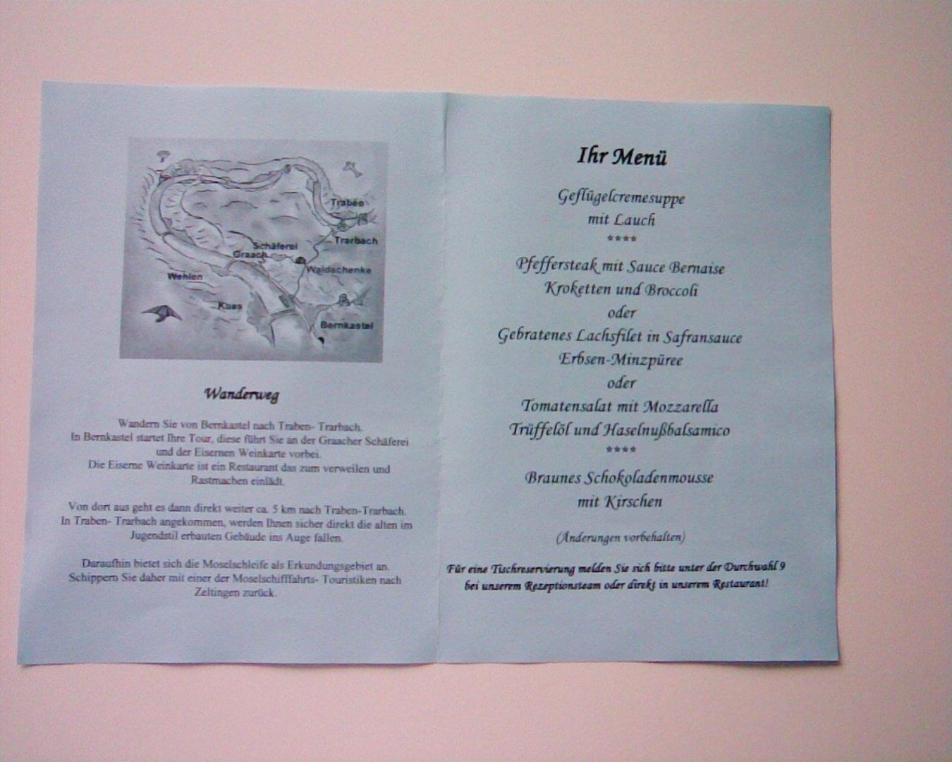 3. Speisekarte der Halbpension