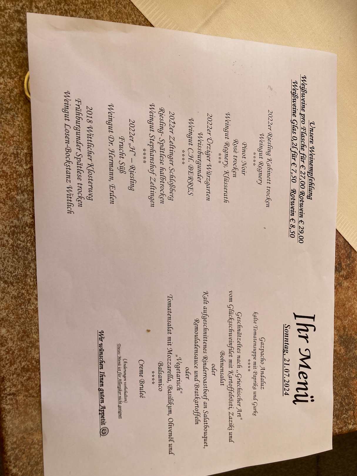 Abend Menü