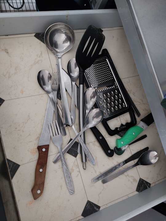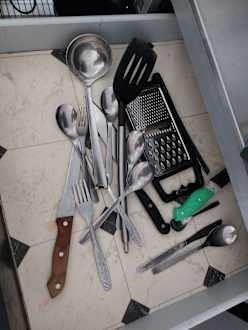 Besteckschublade, dreckiges Sammelsurium