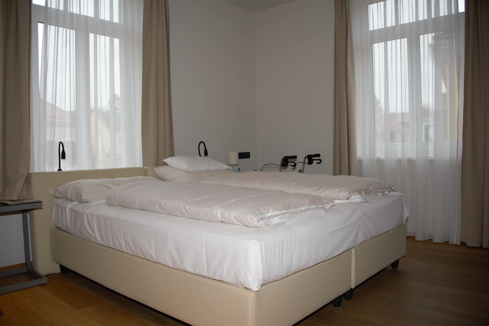 Bequemes Doppelbett , rundum genug Platz für einen Rollstuhl