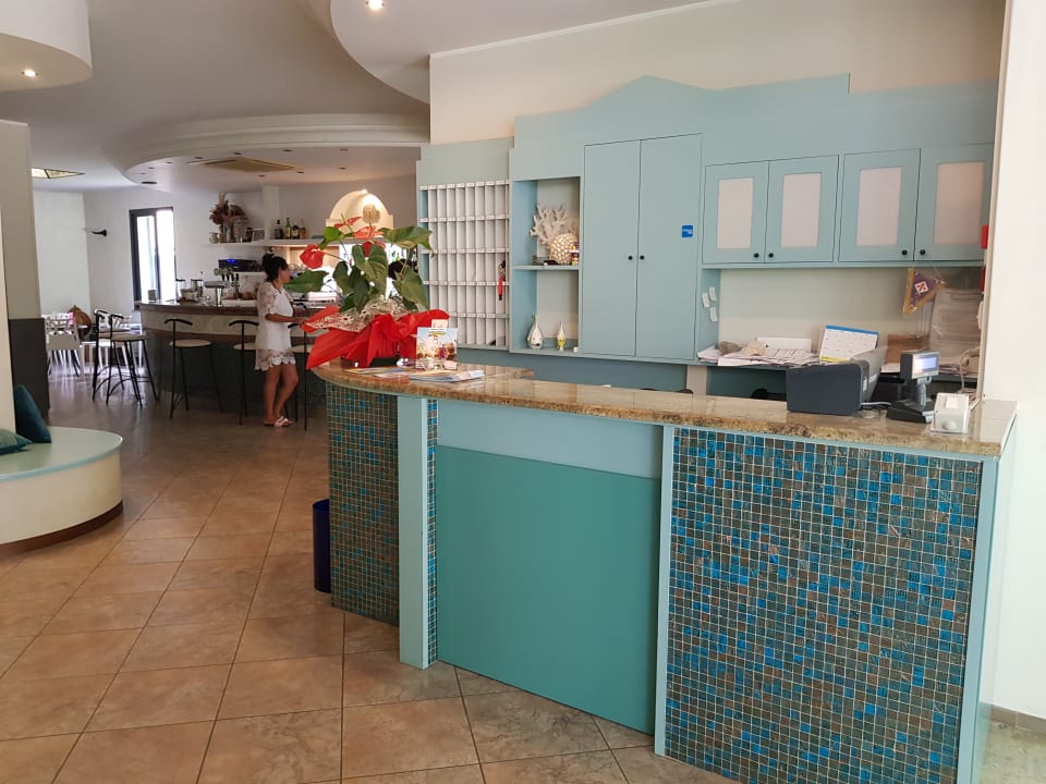 Rezeption und im Hintergrund die kleine Bar