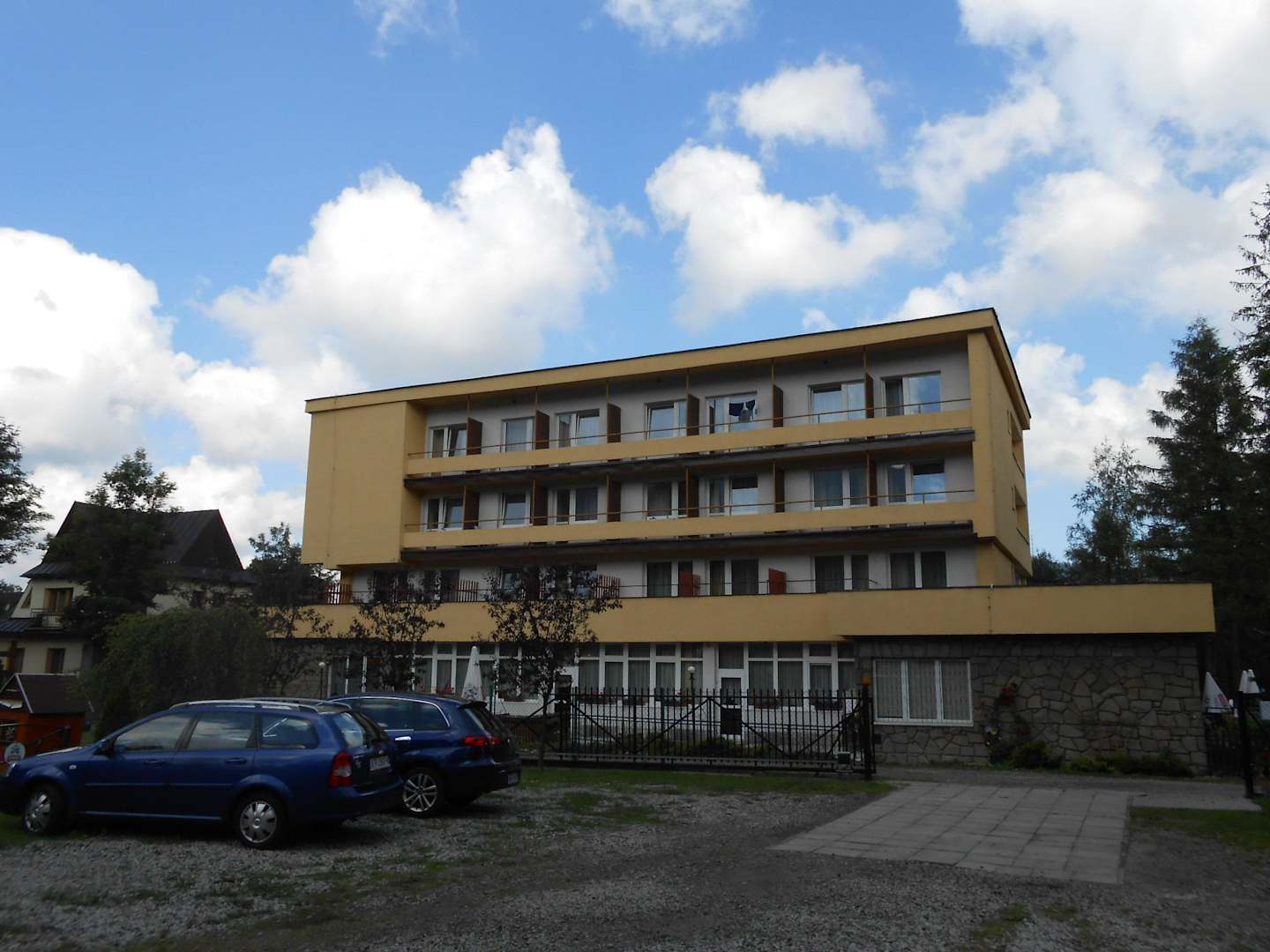 Seitliche Ansicht des Hotels