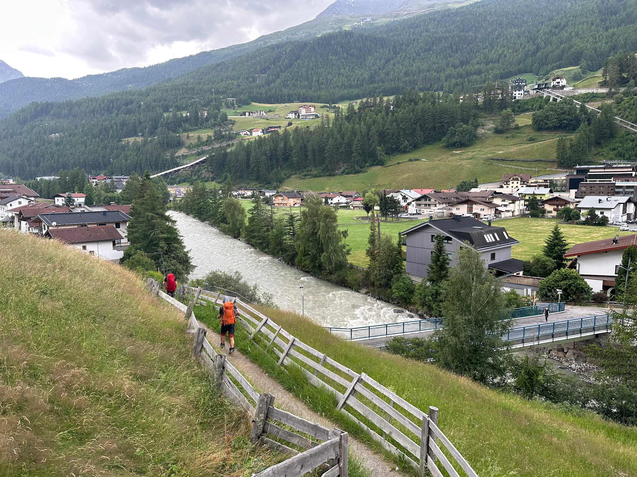 Abstieg aus dem Winternacht Tal mit Blick über Sölden in Richtung Haus. Stephanie