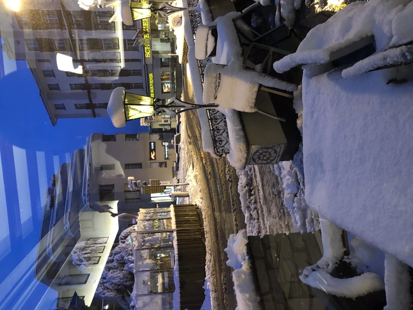 Ausblick abends vom Restaurant. Wintereinbruch im September. Herrlich...
