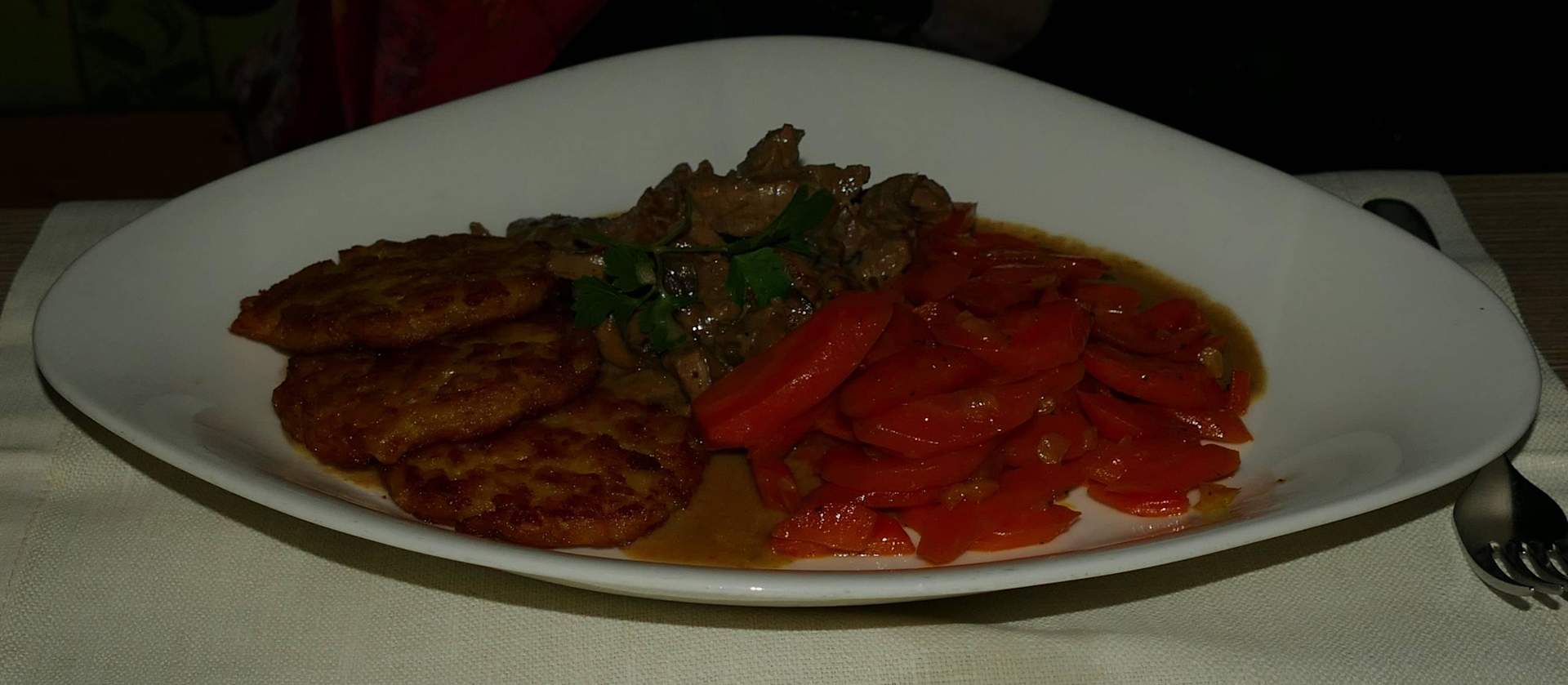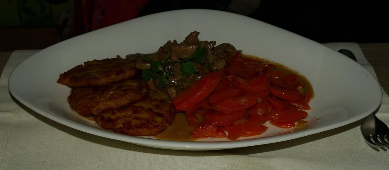 Kalbsgeschn.,Pilze,Vichykarotten,Rösti