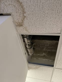 Loch in der Decke links von der Anmeldung