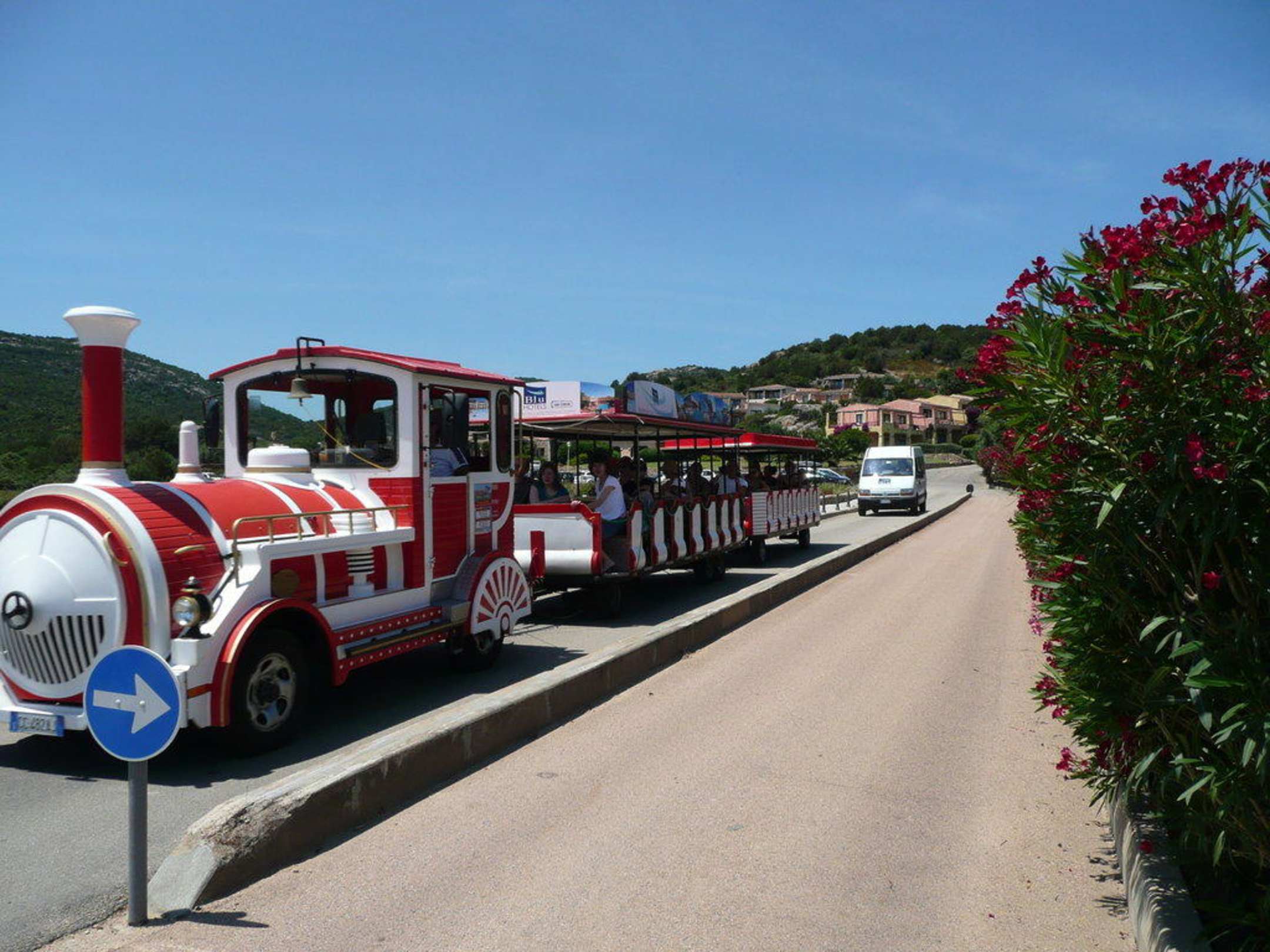 Bimmelbahnhaltestelle unterhalb des Hotels auf dem Zubringerweg. Dient als Verbindung zum Ort Cannigione in der Hochsaison. Wird auch viel von den Besuchern des langen Strandes genutzt.