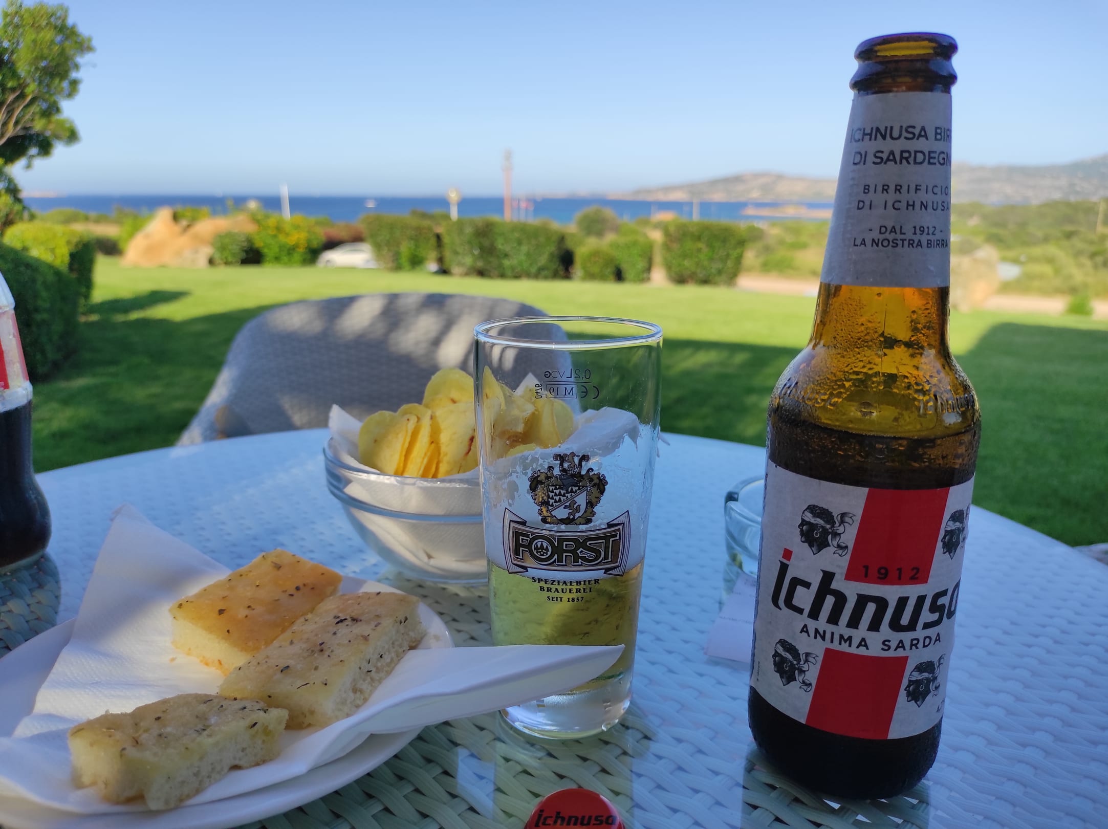 AusblickDer tägliche Aprés-Strand-Weitblick über die langgezogene Bucht bei einem gemütlichen Bierchen auf der Hotelterrasse