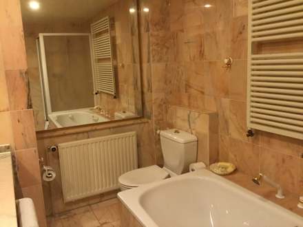 Doppelzimmer mit französischen Balkon. Bad