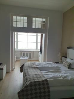Blick von der Türseite des Zimmers "Seeblick XL" Richtung Ausblick Ostsee
