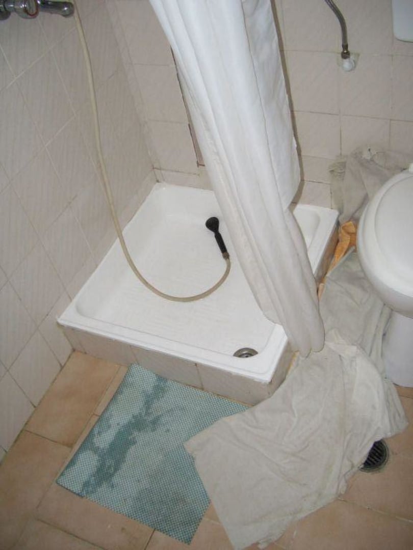Bad/Toilette im Studio ChristinaDie Handtücher am Boden helfen, das Badezimmer einigermaßen trocken zu halten.