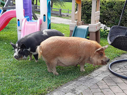 Friedliche und sehr seltene Kune Kune Schweine