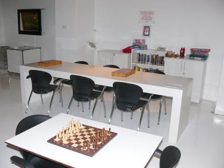 Spiele und Bücher im Untergeschoß