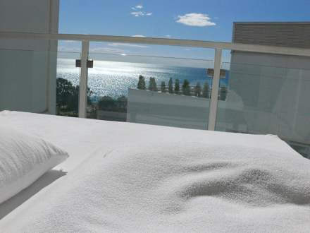 Blick vom Balkonsofa aufs Meer